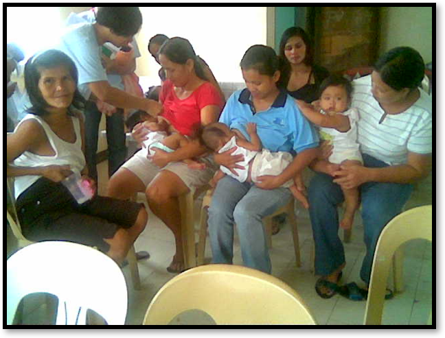 Mothers and women who were committed to relactation would sit together in evacuation centres to encourage babies to return to the breast or produce breast milk to give to babies and toddlers who survived the typhoons. [Credits: Ines Fernandez]